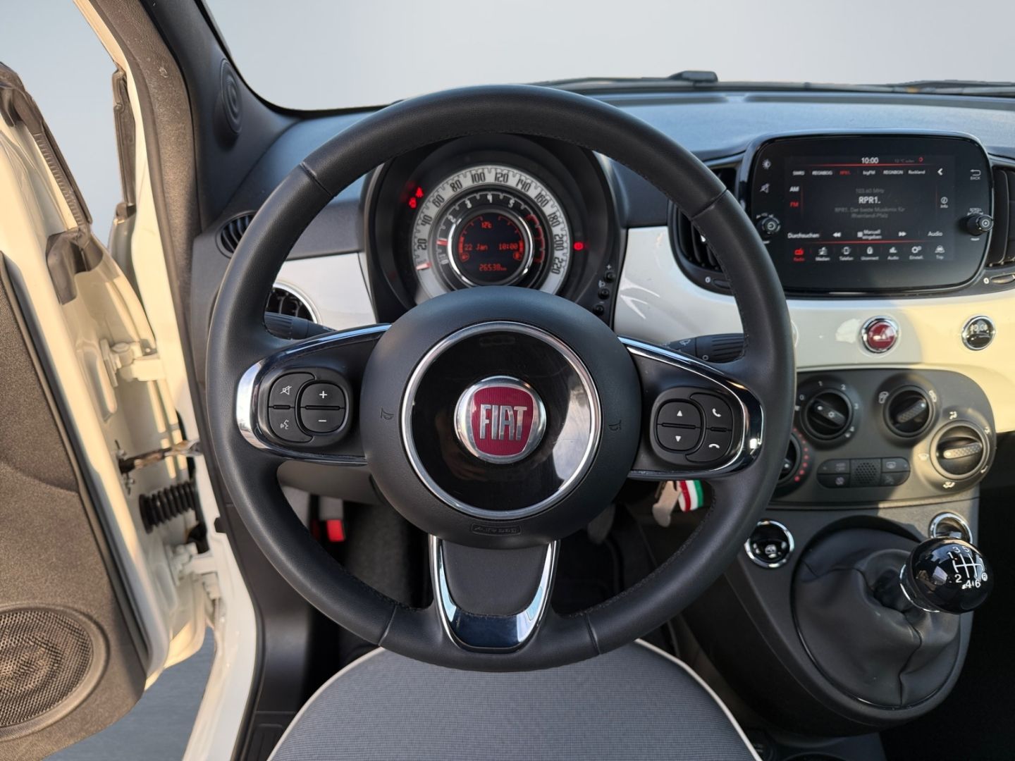 - Weiteres: Standort: 67071 Ludwigshafen, Antriebs-Schlupfregelung (ASR), BORDCOMPUTER, Reifendruck-Kontrollsystem, Geschwindigkeits-Regelanlage (Tempomat), Rußpartikelfilter, Isofix-Aufnahmen für Kindersitz an Rücksitz, Reifen-Reparaturkit, Knieairbag Fahrerseite, LM-Felgen, Schadstoffarm nach Abgasnorm Euro 6d, Klimaanlage, Infotainment-System: UConnect mit MP3-Player (Touchscreen 7), Innenraumfilter: Pollenfilter, Mild-Hybrid 51 kW (Motor 1,0 Ltr. - 51 kW), Außenspiegel elektr. verstell- und heizbar, beide, Einparkhilfe hinten, Einparkhilfe elektronisch, Airbag Fahrer-/Beifahrerseite, Anti-Blockier-System (ABS), Rücksitz geteilt / klappbar, Stoßfänger Wagenfarbe, Lenksäule (Lenkrad) höhenverstellbar, Seitenairbag vorn, Wegfahrsperre (elektronisch), USB-Schnittstelle, Zentralverriegelung, Kopf-Airbag-System vorn und hinten, Fensterheber elektrisch vorn, Elektron. Stabilitäts-Programm (ESP / ESC), Nebelscheinwerfer, Abgasblende verchromt, Audiobedienung am Lenkrad, Außenspiegel Wagenfarbe, Autom. Begleitfunktion der Beleuchtung (Follow me home), Automatische Türverriegelung, Beifahrerairbag abschaltbar, Berganfahrhilfe, Bremsassistent, Bremssättel Rot lackiert, Chrom-Paket, City-Paket, Elektr. Bremskraftverteilung, Elektrische Servolenkung Dual-Drive, Fensterzierleisten verchromt, Freisprechanlage Bluetooth inkl. Audio-Streaming, Geschwindigkeits-Begrenzeranlage, Heckscheibe heizbar, Komfort-Paket, Kopfstützen hinten, Lederlenkrad mit Multifunktion für Audio, Mobile Online Dienste UConnect Live, Positions-Memory für Beifahrersitz, Regen-/Lichtsensor, Sitzhöhenverstellung Fahrersitz, Smartphone Schnittstelle, Start/Stop-Anlage, Steckdose (12V-Anschluß) im Armaturenbrett, Tagfahrlicht, Tankdeckel abschließbar, Tasche an Sitz vorn rechts, Wärmeschutzverglasung, ZV mit Fernbedienung