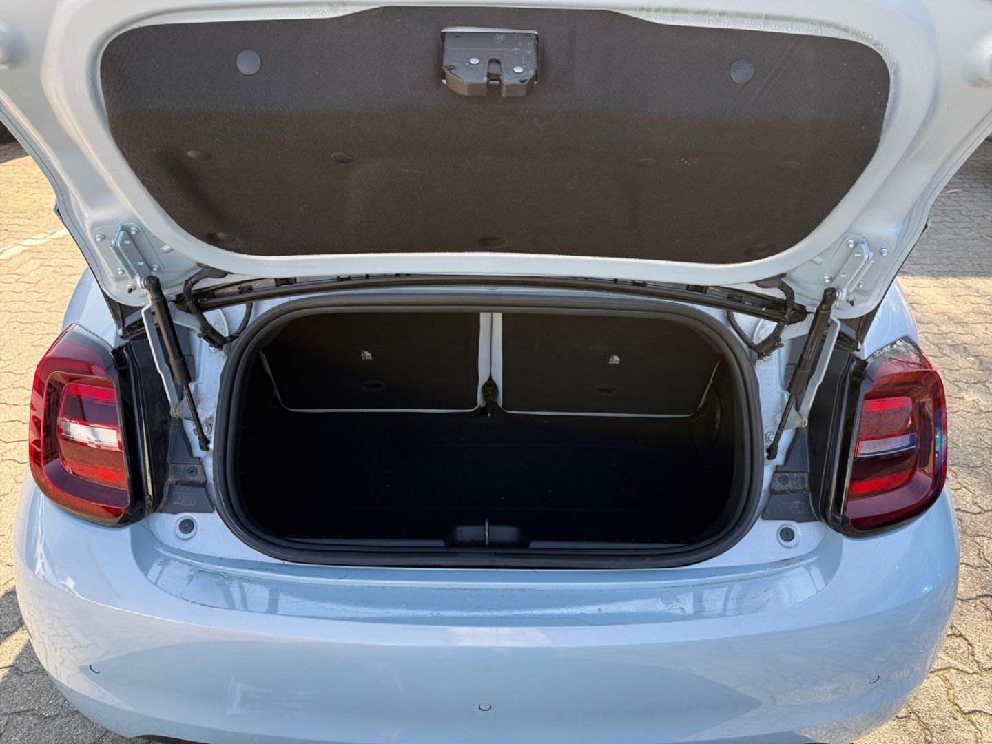 - Weiteres: Standort: 67346 Speyer, Antriebs-Schlupfregelung (ASR), Mittelarmlehne vorn, Scheinwerfer LED, Heckleuchten LED, Ambiente-Beleuchtung, Einparkhilfe hinten, Fernbedienung für Zentralverriegelung und Verdeck, Audiosystem: Premium - HiFi-Anlage von JBL, Elektromotor 87 kW (cont. 43 kW), Sitzheizung vorn, Beifahrerairbag abschaltbar, Fahrmodusschalter, Geschwindigkeits-Regelanlage (Tempomat), Heckscheibe heizbar, Infotainment-System: UConnect 5 mit Navigationssystem, DAB+ und Bluetooth-Freisprecheinrichtung (Touchscreen 10,25), Kopfstützen hinten, Regen-/Lichtsensor, Smartphone Schnittstelle (Apple CarPlay & Android Auto), Wärmeschutzverglasung, Rückfahrkamera mit 360° Surround View, Einstiegsleisten (verchromt), Außenspiegel elektr. verstell- und heizbar, beide, Induktionsladeschale für Smartphone (Wireless Charging), Fensterzierleisten verchromt, Lenkrad (ecoLeder, 2-farbig), LM-Felgen, Armaturenbrett farbig (Wagenfarbe), Lenkrad mit Multifunktion, Tagfahrlicht LED, USB-Schnittstelle, Airbag Fahrer-/Beifahrerseite, Elektron. Stabilitäts-Programm (ESP / ESC), Kopf-Airbag-System vorn, Lenksäule (Lenkrad) höhenverstellbar, Notrufsystem (eCall), Seitenairbag vorn, Fensterheber elektr. vorn mit Komfortschaltung, USB-Anschlüsse (Typ C und Typ A), Antriebsart: Frontantrieb, Aufmerksamkeits-Assistent, Autom. Begleitfunktion der Beleuchtung (Follow me home), Autonomer Notbrems-Assistent (AEB), Autonomes Fahren Level 2, Bremsassistent, Fernlichtassistent, Fiat Co-Driver-Paket Plus, Handschuhfach beleuchtet, Keyless-Entry & Go, Klimaautomatik, Mobile Online Dienste UConnect Live, One Pedal Drive (elektronisches Gaspedal), Parkbremse elektrisch, Polster: Kunstleder, Radioempfang digital (DAB+), Rückfahrkamera Park View, Scheibenwischer beheizbar, Seitenschutzleisten mit Chrom-Applikationen, Spurhalteassistent, Stauassistent, Totwinkel-Assistent, Verdeckbezug Stoff schwarz, Verkehrszeichenerkennung, Winter-Paket
