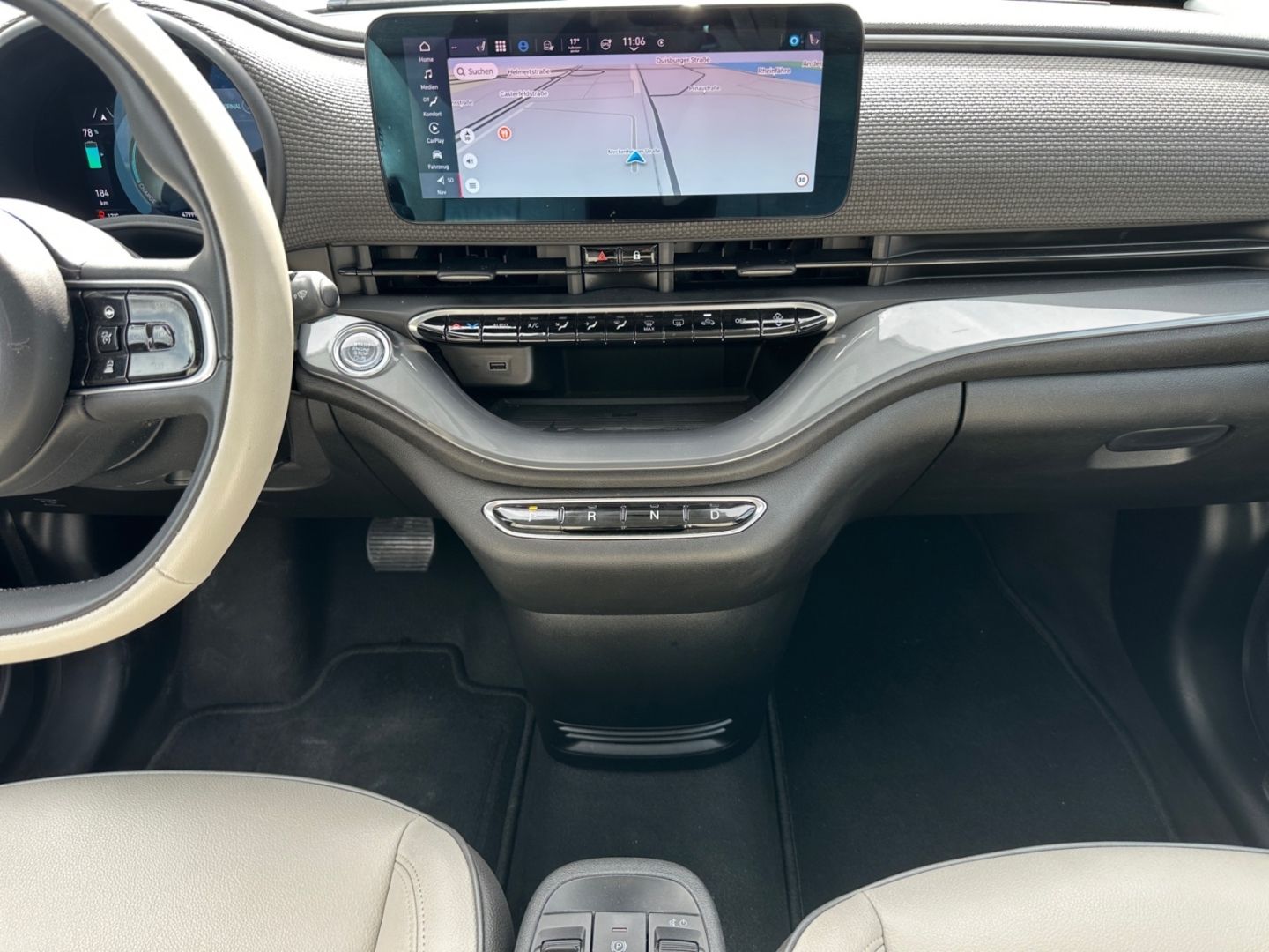 - Weiteres: Standort: 68199 Mannheim-Neckarau, Antriebs-Schlupfregelung (ASR), Sitzbezug / Polsterung: Stoff, Geschwindigkeits-Regelanlage (Tempomat), Mittelarmlehne vorn, Scheinwerfer LED, Heckleuchten LED, Außenspiegel elektr. verstell- und heizbar, beide, Ambiente-Beleuchtung, LM-Felgen, Fahrmodusschalter, Infotainment-System: UConnect 5 mit Navigationssystem, DAB+ und Bluetooth-Freisprecheinrichtung (Touchscreen 10,25), Lenkrad (ecoLeder, 2-farbig), Elektromotor 87 kW (cont. 43 kW), Airbag Fahrer-/Beifahrerseite, Rücksitz geteilt / klappbar, Tagfahrlicht LED, Lenksäule (Lenkrad) höhenverstellbar, Seitenairbag vorn, Kopf-Airbag-System vorn, USB-Schnittstelle, Elektron. Stabilitäts-Programm (ESP / ESC), USB-Anschlüsse (Typ C und Typ A), Fensterheber elektr. vorn mit Komfortschaltung, Notrufsystem (eCall), Metallic-Lackierung, Antriebsart: Frontantrieb, Aufmerksamkeits-Assistent, Autom. Begleitfunktion der Beleuchtung (Follow me home), Autonomer Notbrems-Assistent (AEB), Autonomes Fahren Level 2, Beifahrerairbag abschaltbar, Bremsassistent, Einschaltautomatik für Fahrlicht / Lichtsensor, Einstiegsleisten (verchromt), elektr. Panoramadach (Skydome) mit Sonnenrollo, Fensterzierleisten verchromt, Fernlichtassistent, Heckscheibe heizbar, Induktionsladeschale für Smartphone, Keyless-Entry & Go, Klimaautomatik, Kopfstützen hinten, Memoryfunktion für Sitz vorn links, Mobile Online Dienste UConnect Live, One Pedal Drive (elektronisches Gaspedal), Parkbremse elektrisch, Radioempfang digital (DAB+), Regen-/Lichtsensor, Rückfahrkamera mit 360° Surround View, Rückfahrkamera Park View, Scheibenwischer beheizbar, Seitenschutzleisten mit Chrom-Applikationen, Sitzheizung vorn, Smartphone Schnittstelle, Spurhalteassistent, Totwinkel-Assistent, Verkehrszeichenerkennung, Wärmeschutzverglasung, Winter-Paket