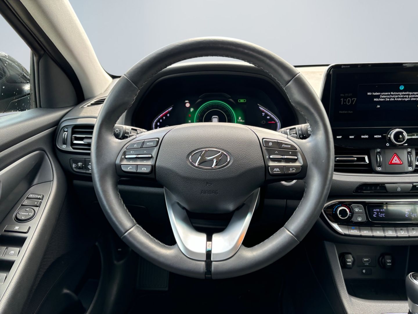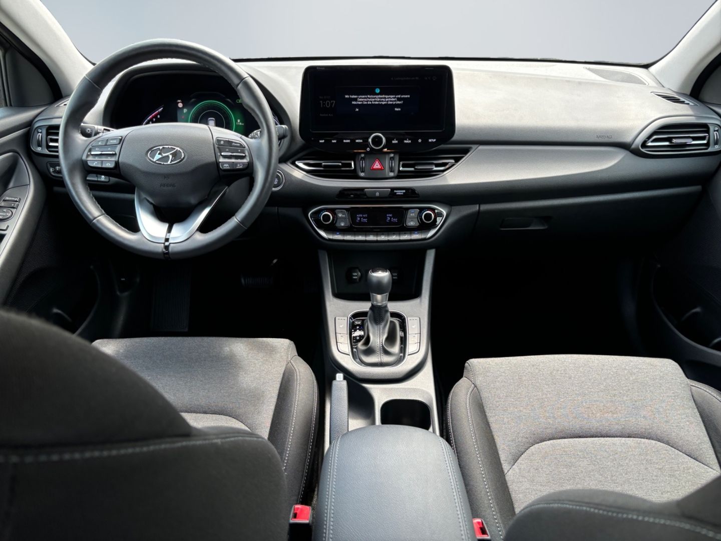- Weiteres: Standort: 67354 Römerberg, Reifendruck-Kontrollsystem, Geschwindigkeits-Regelanlage (Tempomat), Schalt-/Wählhebelgriff Leder, Rückfahrkamera, Mittelarmlehne hinten mit Getränkehalter, Scheibenwischer mit Regensensor, Scheinwerfer LED, Reifen-Reparaturkit, Verglasung getönt, Heckleuchten LED, Außenspiegel elektr. verstell- und heizbar, beide, Alarmanlage, Audiosystem: Radio RDS, Einparkhilfe hinten, LM-Felgen, Getriebe 7-Gang - Doppelkupplungsgetriebe DCT, Schadstoffarm nach Abgasnorm Euro 6d, Touchscreen-Farbdisplay (10,25 Zoll), Freisprecheinrichtung Bluetooth, Außenspiegel mit autom. Absenkfunktion, Mica-Lackierung / Mineraleffekt-Lackierung, ConstructionTimeMapping, Anti-Blockier-System (ABS), Lenkrad mit Schaltwippen, Nebelscheinwerfer, Stoßfänger Wagenfarbe, Tagfahrlicht LED, Fensterheber elektrisch vorn, Seitenairbag vorn, Servolenkung, Start-Stop-Knopf, Wegfahrsperre (elektronisch), Kopf-Airbag-System, Gepäckraumabdeckung / Rollo, Rücksitzlehne geteilt/klappbar, Airbag Beifahrerseite, Airbag Fahrerseite, USB-Anschluss + AUX-IN-Anschluss, Fensterheber elektrisch vorn und hinten, mit Auf-/Ab-Automatik, Fahrer-Informations-System (Display 7,0 Zoll), 12V-Steckdose im Laderaum, Abbiegelicht, aktiver Spurhalteassistent (LKAS, Lane Keep Assist System), Aktives Bremslicht (ESS), Audio-Navigationssystem, Aufmerksamkeits-Assistent, Außenspiegel elektr. anklappbar, Autonome Notbremsfunktion inkl. Frontkollisionswarnung (FCA), Autonome Notbremsfunktion inkl. Fußgängererkennung (FCA-Ped.), Beifahrerairbag abschaltbar, Berganfahrhilfe, Blinkleuchte in Außenspiegel integriert, Bremsassistent, Einparkhilfe vorn und hinten, Einschaltautomatik für Fahrlicht / Lichtsensor, Elektr. Bremskraftverteilung, elektr. Fensterheber mit Einklemmschutz, Elektron. Stabilitätskontrolle (ESC) mit Bremsassistent, Fensterheber elektrisch vorn und hinten, Fensterrahmen Zierleisten schwarz glänzend, Fernlichtassistent, Frontscheibe mit Bandfilter, Frontscheibe wärmedämmend, Funktions-Paket, Gegenlenkunterstützung (Vehicle Stability Management - VSM), Gepäck-/Laderaumleuchte, Getränkehalter hinten, Getränkehalter vorn, Gurtstraffer, Gurtwarner, Heckscheibe heizbar, Induktionsladeschale für Smartphone, Innenspiegel mit Abblendautomatik, Isofix-Aufnahmen für Kindersitz, Klimaautomatik 2-Zonen, Komfort-Paket, Kopfstützen hinten, Kühlergrill schwarz glanzlackiert, Lederlenkrad, LED-Paket, Lendenwirbelstütze elektr. verstellbar, Lenkrad heizbar, Leseleuchte, Lifetime MapCare (Internetbasierende Dienste), Mild-Hybrid 117 kW (Motor 1,5 Ltr. - 117 kW T-GDI), Mittelarmlehne vorn verschiebbar, Navigations-Paket, Radioempfang digital (DAB+), Seitenscheiben hinten abgedunkelt, Sicherheitssystem mit automatischem Notruf (ERA GLONASS / eCall), Sitzheizung vorn, Sitzhöhenverstellung, Sitzhöhenverstellung Fahrersitz, Smart-Key, Smartphone Schnittstelle, Start/Stop-Anlage, Türgriffe lackiert, Verkehrsschildassistent, ZV mit Fernbedienung