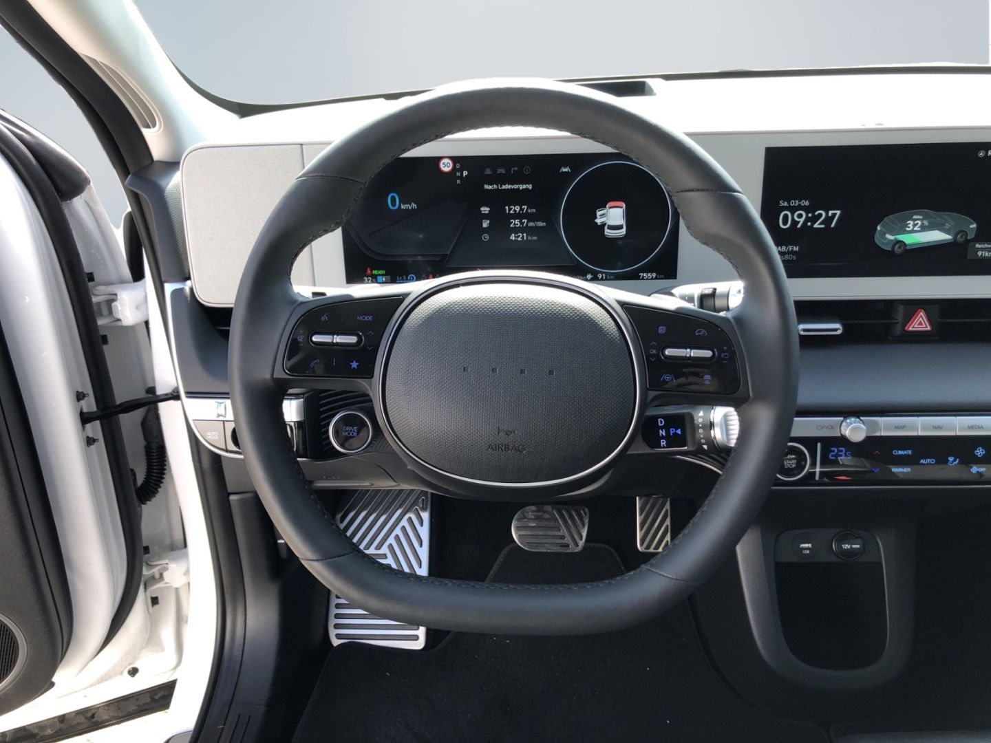 Reifendruck-Kontrollsystem, Antriebsart: Allradantrieb, Sitzbezug / Polsterung: Leder, Rückfahrkamera, Scheibenwischer mit Regensensor, Reifen-Reparaturkit, Alarmanlage, Leuchtweitenregelung, Audiosystem: Radio RDS, Sonnenschutzrollo an Türscheiben hinten, Head-up-Display, Komfortsitze vorn (inkl. Belüftung / Sitzheizung), Seitenairbag vorn mitte (Central Airbag), Sound-System BOSE, Touchscreen-Farbdisplay (12,25 Zoll), Heckleuchten LED (Pixel-Design), Elektromotor 225 kW (cont. 76 kW, Dual-Elektromotor), Sonderlackierung Atlas White Uni, Sitze vorn elektr. verstellbar (rechts mit Memory), , Lenkrad mit Schaltwippen, Tagfahrlicht LED, Lenksäule (Lenkrad) höhenverstellbar, Seitenairbag vorn, Servolenkung, Start-Stop-Knopf, Wegfahrsperre (elektronisch), Kopf-Airbag-System, Airbag Beifahrerseite, Airbag Fahrerseite, USB-Anschluss Mittelkonsole, Fensterheber elektrisch vorn und hinten, mit Auf-/Ab-Automatik, USB-Anschluss hinten, Pixel-LED-Scheinwerfer, Navigationsbasierte Adaptive Geschwindigkeitsregelanlage (Tempomat) mit Abstandsregelung (NSCC), MBUX Augmented Reality Head-up-Display, Batterieheizsystem, Rücksitz(e) elektr. verstellbar, LM-Felgen 8,5x20, aktiver Spurhalteassistent (LKAS, Lane Keep Assist System), aktiver Totwinkel-Assistent, Aktives Bremslicht (ESS), Audio-Navigationssystem, Aufmerksamkeits-Assistent, Außenspiegel lackiert, Ausstiegswarnung, Autobahnassistent 2.0 (Highway Driving Assist, HDA 2), Autonome Notbremsfunktion inkl. Abbiegefunktion (FCA-JT), Autonome Notbremsfunktion inkl. Fahrradfahrererkennung (FCA-Cyc.), Autonome Notbremsfunktion inkl. Frontkollisionswarnung (FCA), Autonome Notbremsfunktion inkl. Fußgängererkennung (FCA-Ped.), Beifahrerairbag abschaltbar, Berganfahrhilfe, Blinkleuchte in Außenspiegel integriert, City-Notbremsfunktion, rückwärts (PCA-R), Drive-Mode Auswahl, Effizienz-Paket, Einschaltautomatik für Fahrlicht / Lichtsensor, Elektr. Bremskraftverteilung, elektr. Fahrersitz/Memory, elektr. Fensterheber mit Einklemmschutz, elektr. Heckklappe sensorgesteuert, Elektron. Stabilitätskontrolle (ESC) mit Bremsassistent, Fahrersitz elektr. verstellbar, Fernlichtassistent, Freisprechanlage Bluetooth, Gurtstraffer, Gurtwarner, Heckscheibe heizbar, Heckscheibenwischer, Induktionsladeschale für Smartphone, Innenspiegel mit Abblendautomatik, Insassenalarm (ROA), Isofix-Aufnahmen für Kindersitz, Kamerasystem Around View, Klimaautomatik 2-Zonen, Ladevorrichtung On-Board-Lader (3-Phasen), Lederlenkrad, LED-Paket, Lenkrad heizbar, Lenksäule höhen-/längsverstellbar, Mittelarmlehne hinten, Mittelarmlehne vorn verschiebbar, Multikollisionsbremse (Multi Collision Brake), Parkbremse elektrisch (EPB), Park-Paket, Querverkehrs-Assistent vorn (Kreuzungs-Assistent), Radioempfang digital (DAB+), Relax-Paket, Remote Parklenkassistent (Remote Smart Parking Assist, RSPA)
