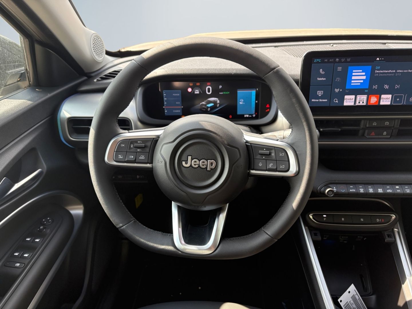 - Weiteres: Standort: 67354 Römerberg, ISOFIX-Aufnahmen für Kindersitz, Geschwindigkeits-Regelanlage (Tempomat), Scheinwerfer LED, Außenspiegel elektr. verstell- und heizbar, beide, Einparkhilfe hinten, Lenksäule (Lenkrad) mechan. verstellbar, LM-Felgen, Audiosystem: UConnect Smartouch Multimedia, Sitzbezug / Polsterung: Stoff / Vinyl, Lenkrad (Kunstleder), Info-Center mit 10,25 Display, Elektromotor 115 kW, Traction-Control-System (Selec-Terrain), Fahrassistenz-System: Autonomer Notbrems-Assistent mit Fußgängererkennung, Infotainment-System: UConnect mit DAB Radioempfang (Touchscreen 10,25), Mittelarmlehne vorn mit Staufach, Radstand 2562 mm, Sitz vorn rechts verstellbar (4-fach), Heckleuchten Halogen, Armaturentafel silber, Smartphone Schnittstelle (Apple CarPlay & Android Auto), Airbag Fahrer-/Beifahrerseite, Anti-Blockier-System (ABS), Außenspiegel elektr. verstellbar, beide, Start-Stop-Knopf, Zentralverriegelung, Antriebsart: Frontantrieb, Auffahrwarnsystem (Forward Collision Warning), Bergabfahr-Assistent, DAB-Tuner (Radioempfang digital), Elektron. Stabilitäts-Programm, Elektron. Traktionskontrolle, Fensterheber elektrisch vorn und hinten, Frontscheibe mit Wischerablagenheizung, Gepäckraumboden höhenverstellbar, Klimaautomatik, Müdigkeitserkennung, Nebelscheinwerfer LED, Parkbremse elektro-mechanisch, Schließ-/Startsystem Keyless Go, Sitz vorn links verstellbar (6-fach), Sitzbezug / Polsterung: Leder, Sitzheizung vorn, Spurhalteassistent, Überschlag-Schutzsystem (ERM), Unterfahrschutz Silber, Verkehrszeichenerkennung (TSR), ZV mit Fernbedienung